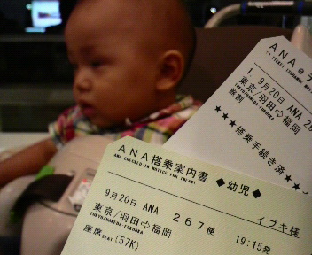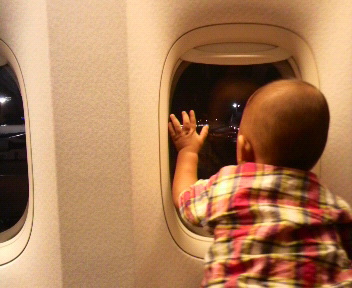 初飛行機のいぶぽんは、夜のフライトで眠かった事もあって終始ぐずりぎみ…(^-^;