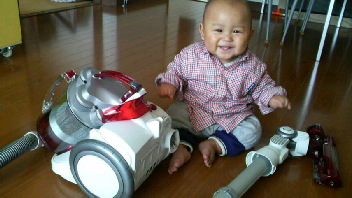 ハイハイで掃除機を追い掛け回します。
