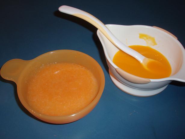 26日27日 にんじんサツマイモの2色がゆ かぼちゃのポタージュ(4)