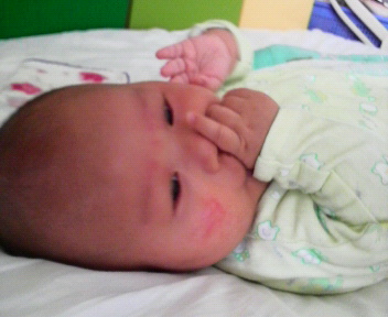 夜、機嫌が悪くぐずぐずしている伊吹君、