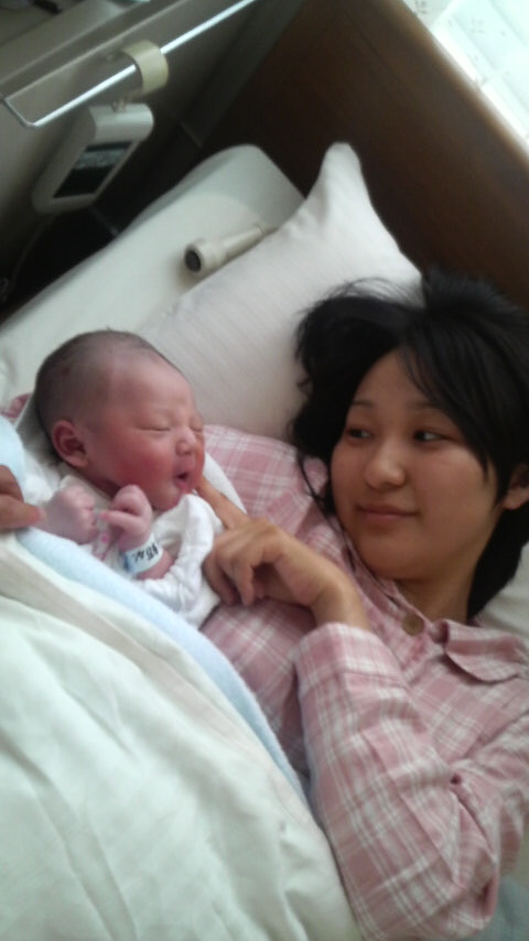 今病室で産まれてまだ31時間のいぶき君と一緒にいます(^-^)