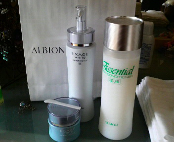 ALBIONのホワイトニング美容液と化粧水とクリームでぇす。