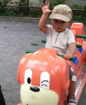 両親に自由が丘までつれてこられ、たいして興味のない買い物に付き合わされ、やっと公園と言う名のオアシスを発見した沢山の子供達でごった返している公園にいぶぷんも元気に突入!
