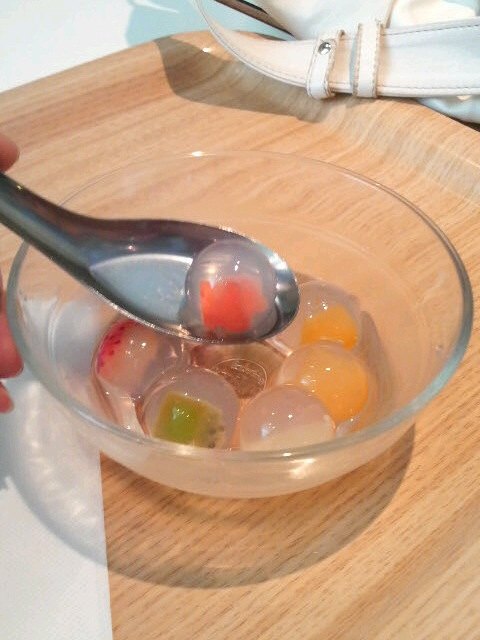 まぁるいゼリーのなかにフルーツが入ってるの。