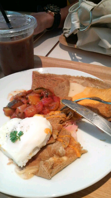 暖かいチーズやハムや温野菜の乗ったクレープをたべた(^q^)
